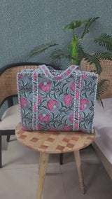 Handblock Printed Quilted Tote Bag with concealed zip ( 17x18x 6 inches)