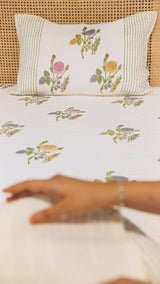 Handblock Printed Reversible Paani Jaal Quilted Bedcover with 2 Pillow Covers
